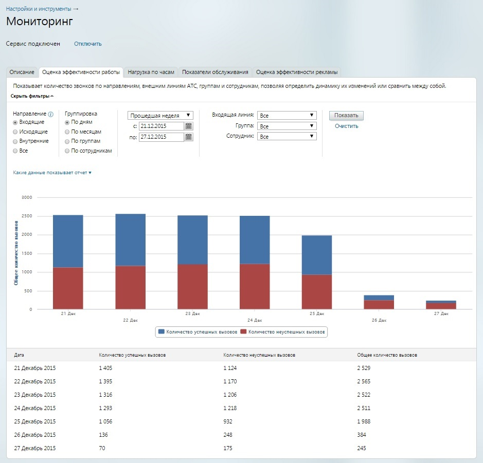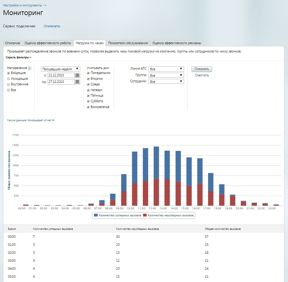 Виртуальная АТС MANGO OFFICE обладает уникальным механизмом анализа статистической информации по всем совершенным и принятым вызовам. Вся информация по вызовам накапливается в Виртуальной АТС и доступна в Личном кабинете в модулях «История вызовов» и «Мониторинг» в графическом виде или в виде файлов, которые могут быть выгружены на компьютер для дальнейшей обработки.